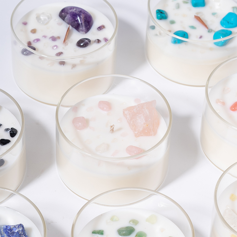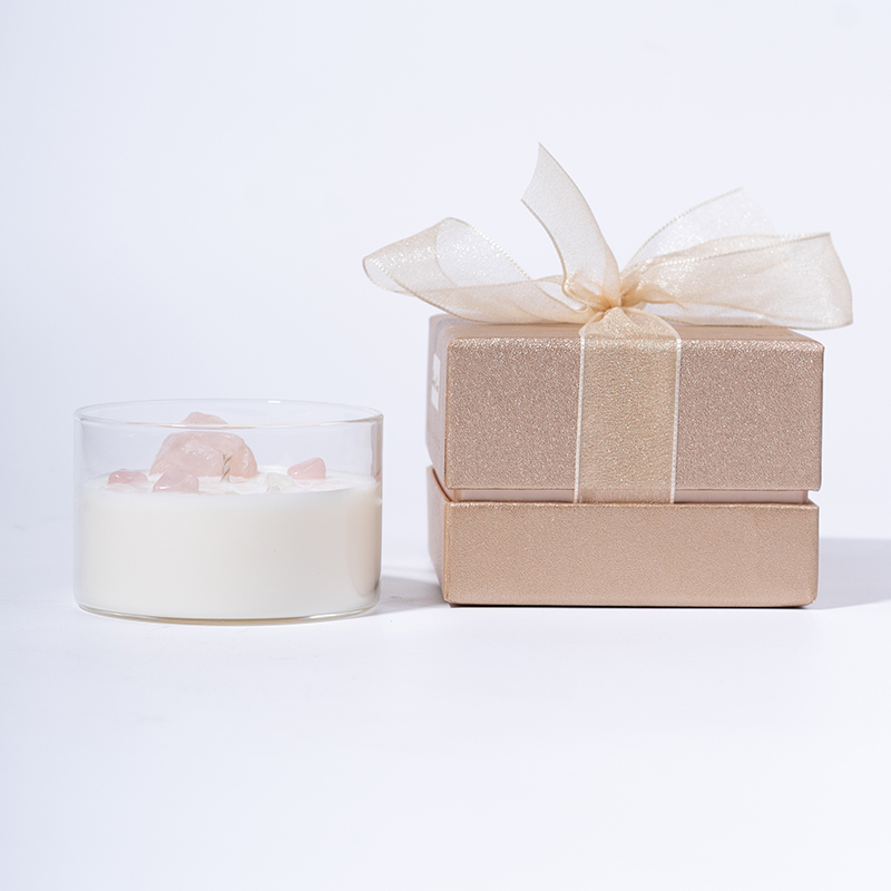 Pink crystal stone transparent glass wood candle wick aromatherapy candle gift box