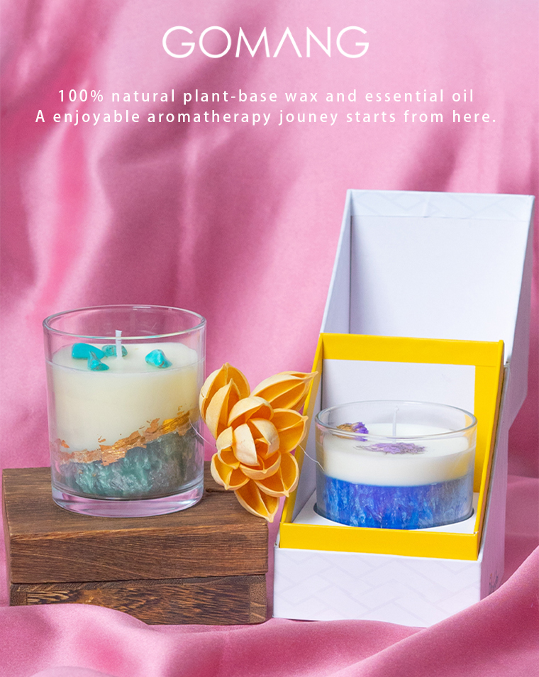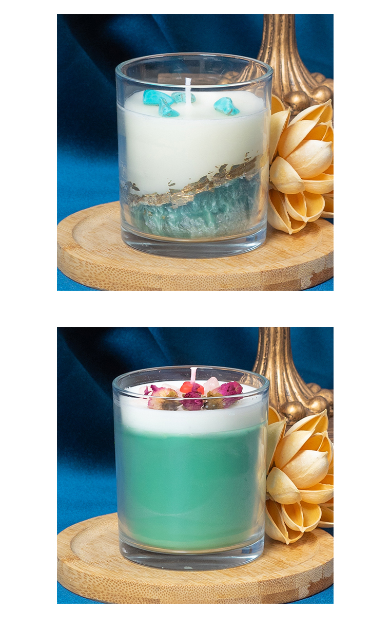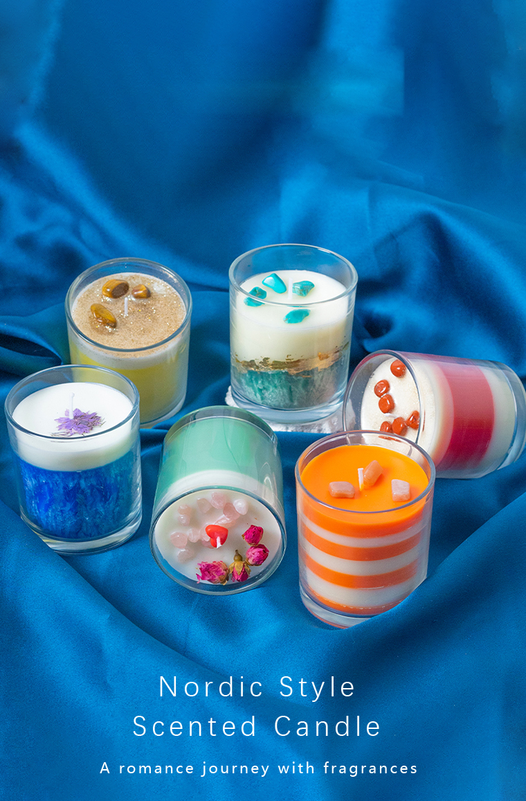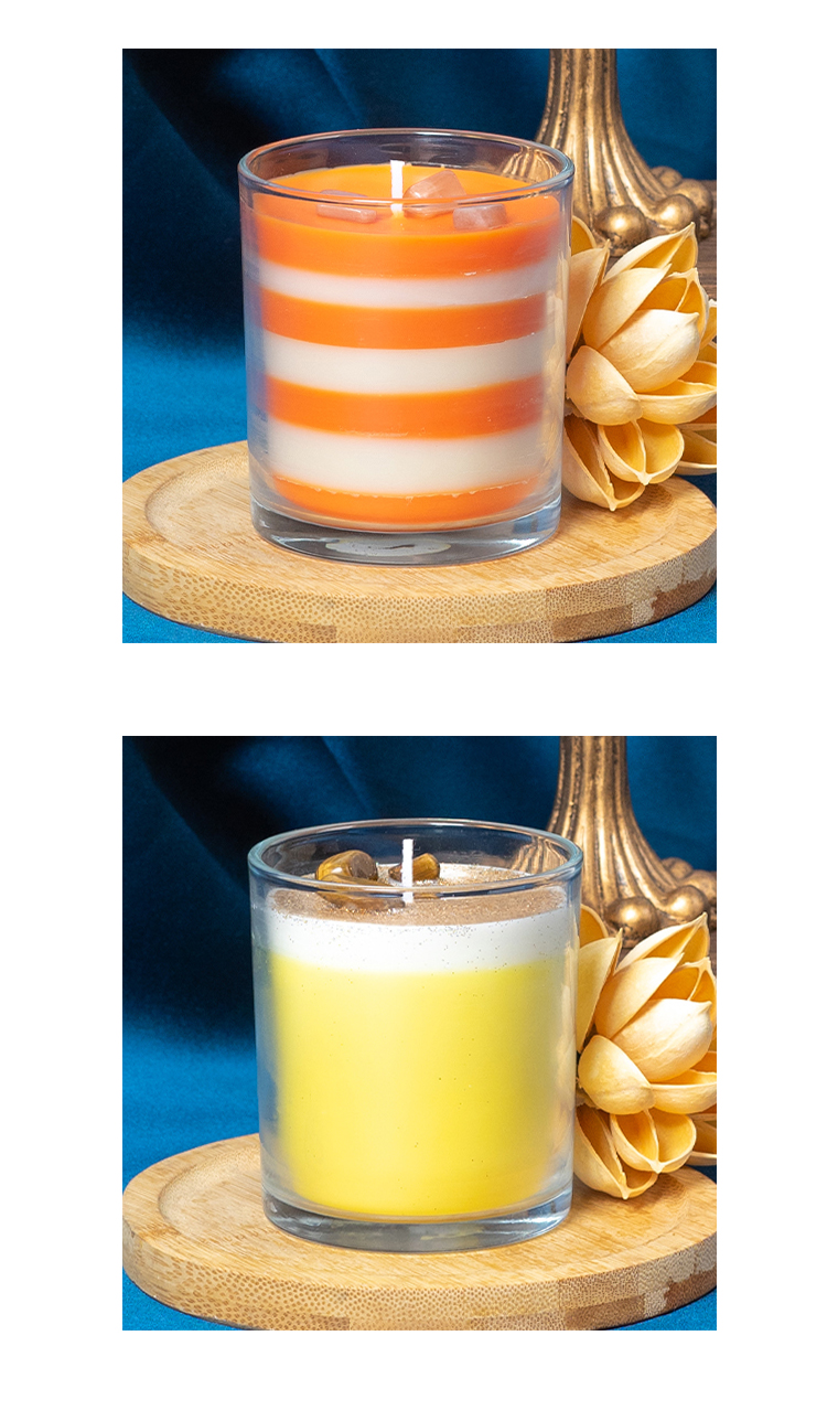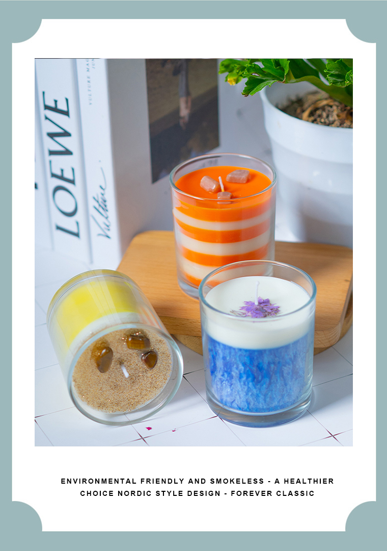Transparent glass jar multi-colored layered scented candle