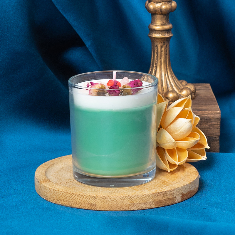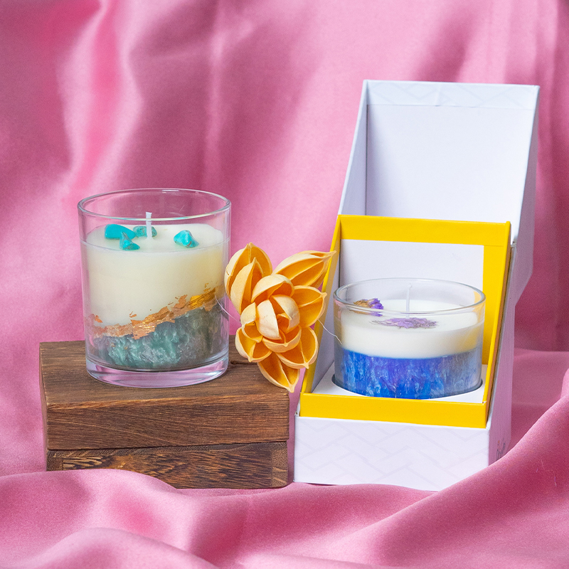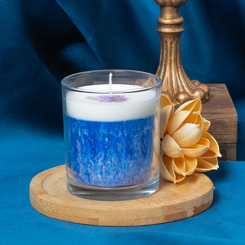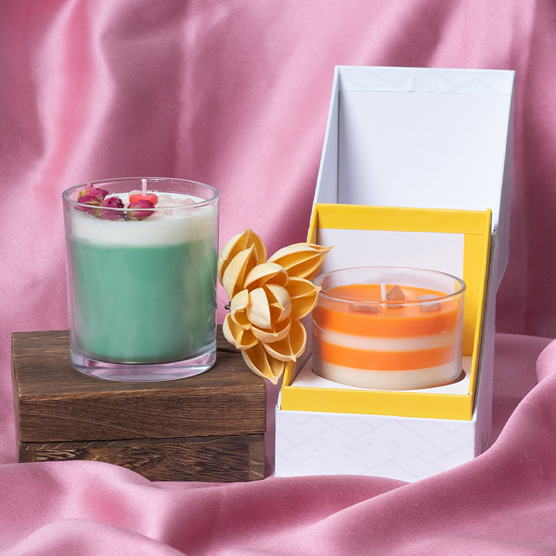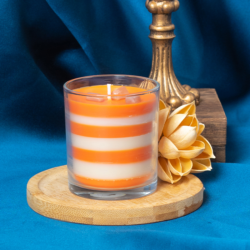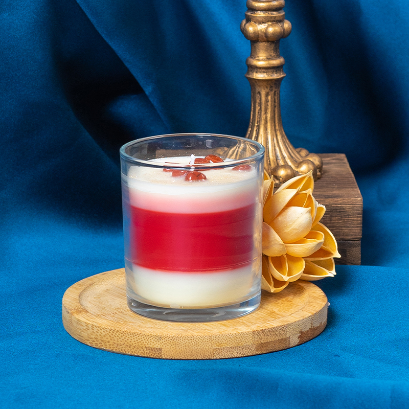 Transparent glass jar multi-colored layered scented candle